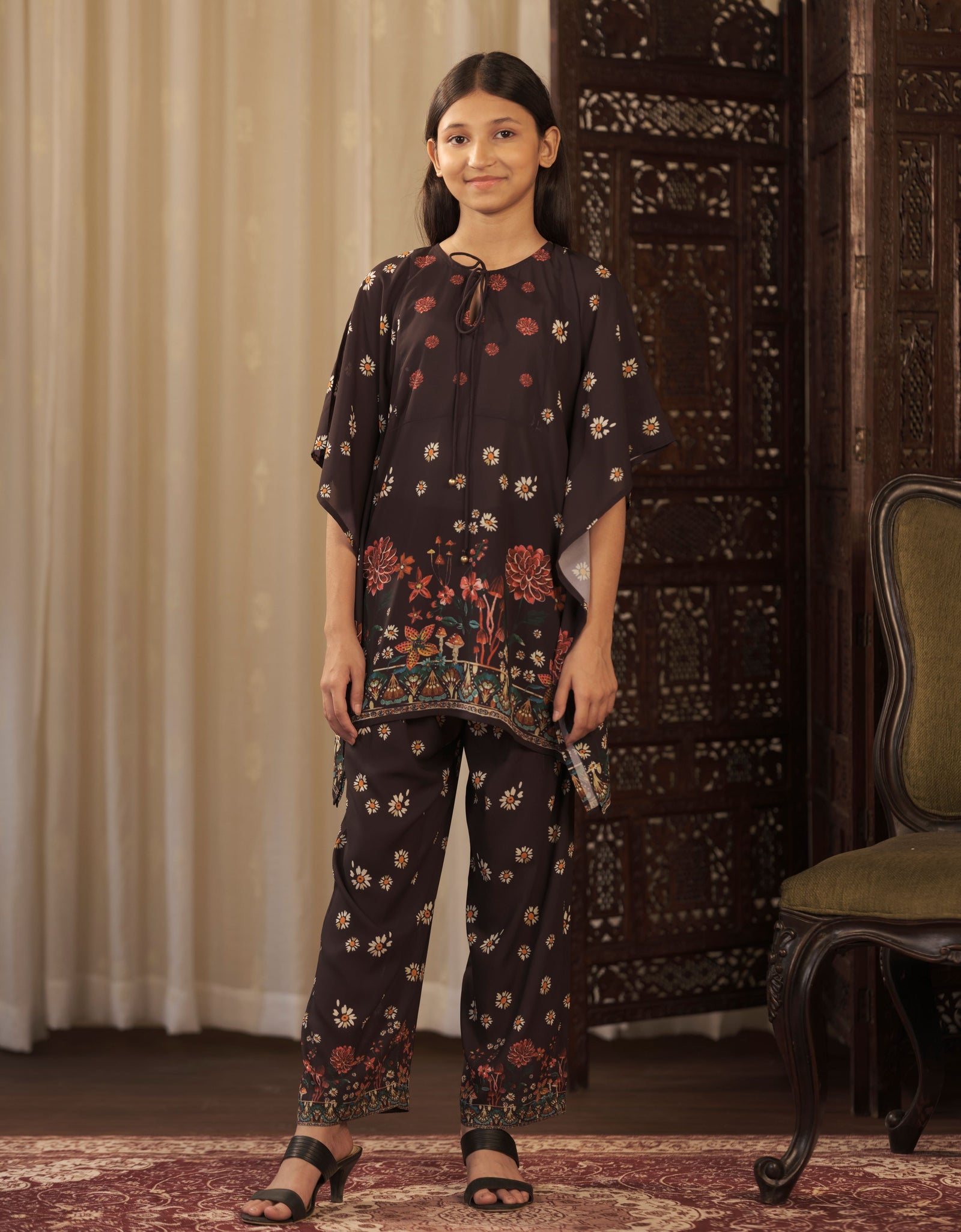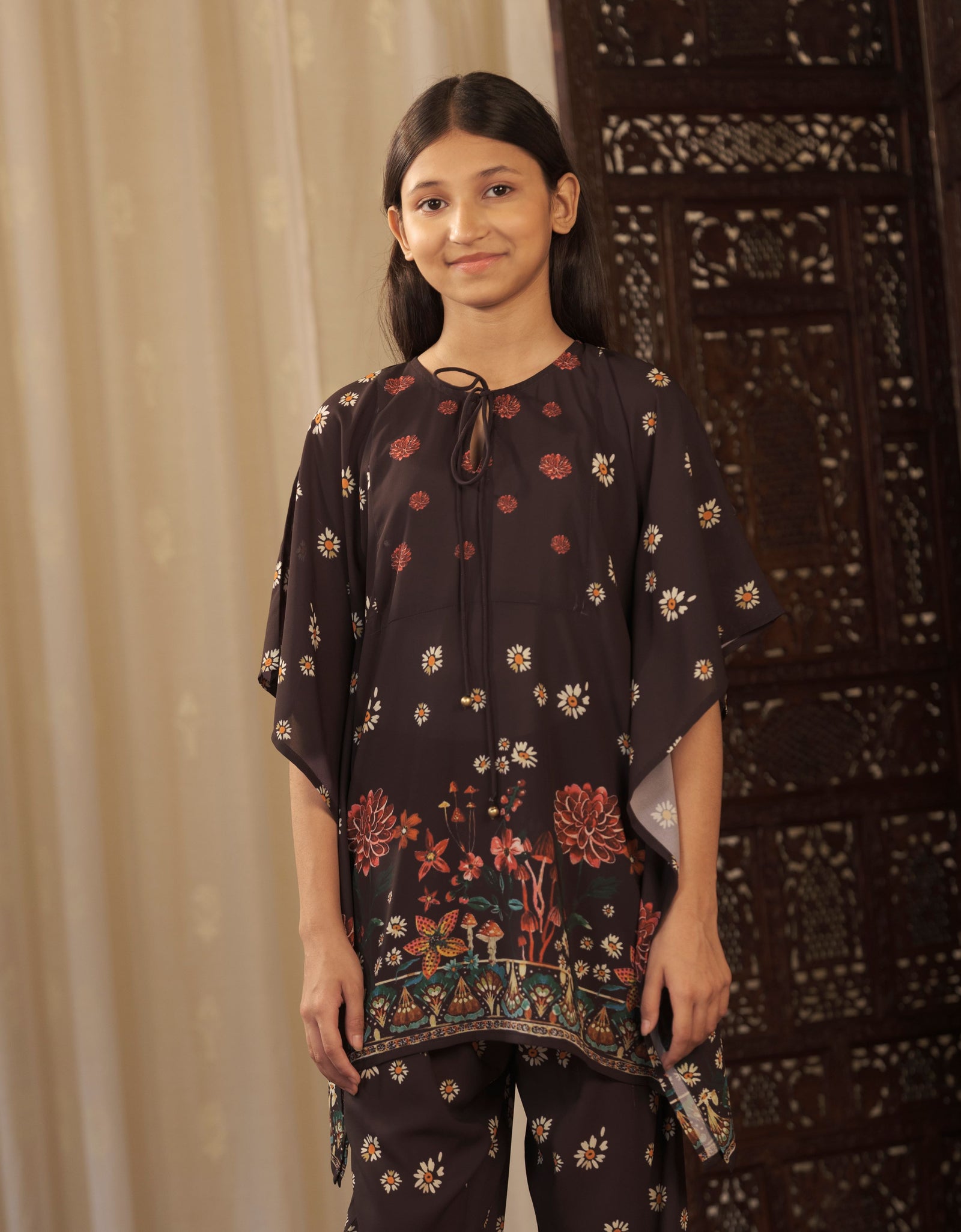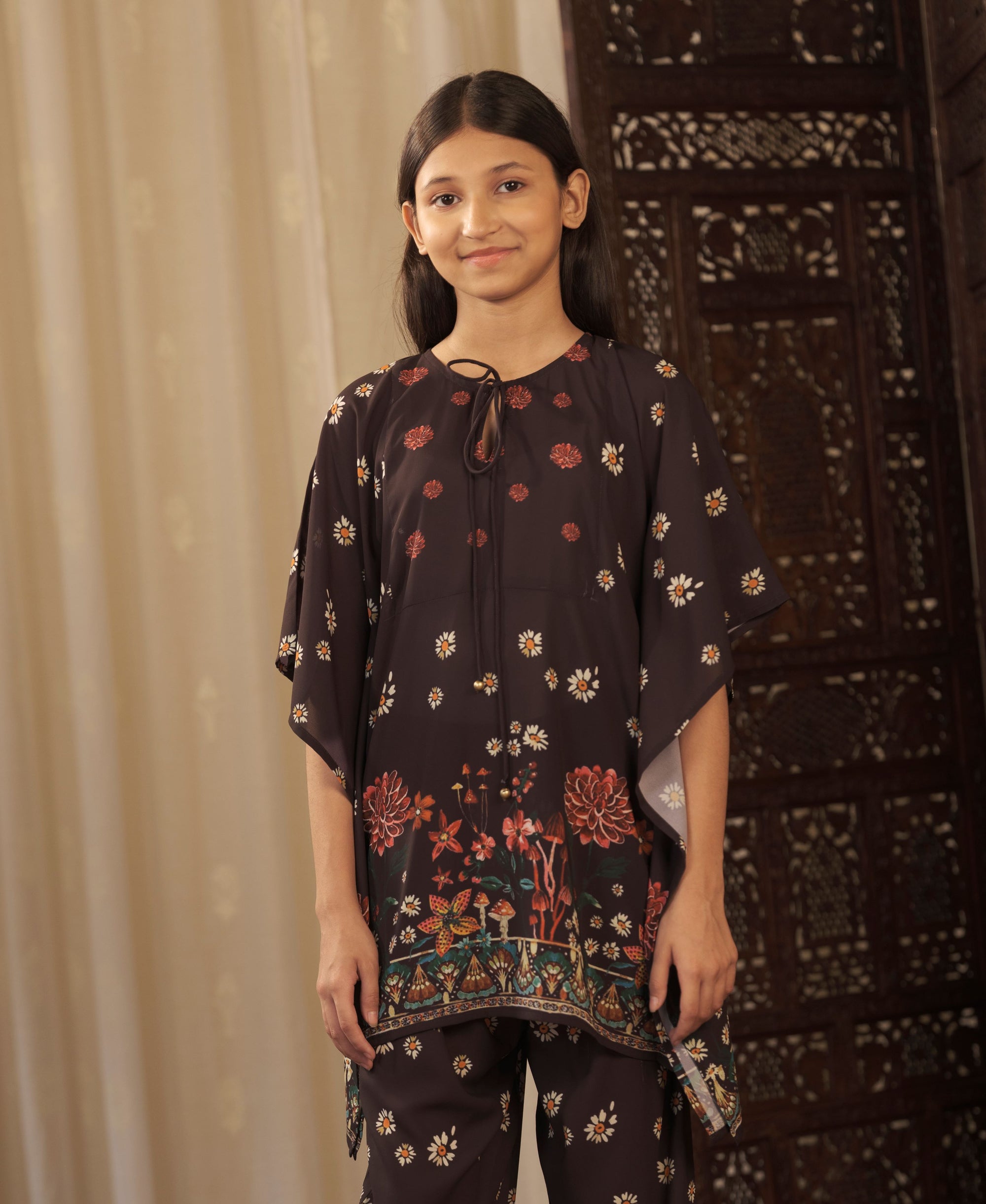 𝗥𝗘𝗠𝗜𝗨𝗠 𝗙𝗔𝗕𝗥𝗜𝗖: The klubhaus Girl's Set is made from georgette which makes it very soft and comfortable to wear. This Girl's Set has a soft flat double-stitched collar